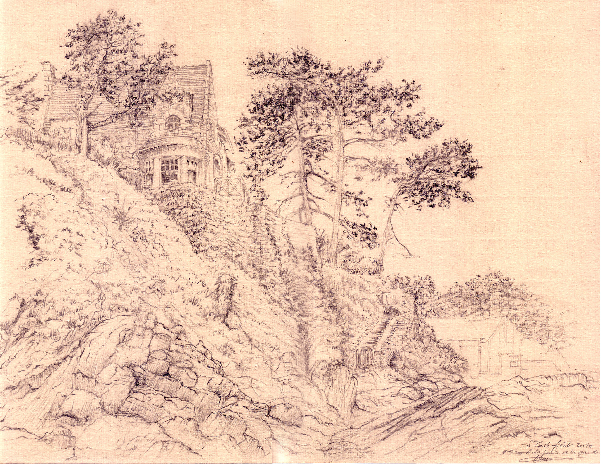 Saint Cast – L’arrière de l’Hotêl AR VRO. Crayon sur papier
